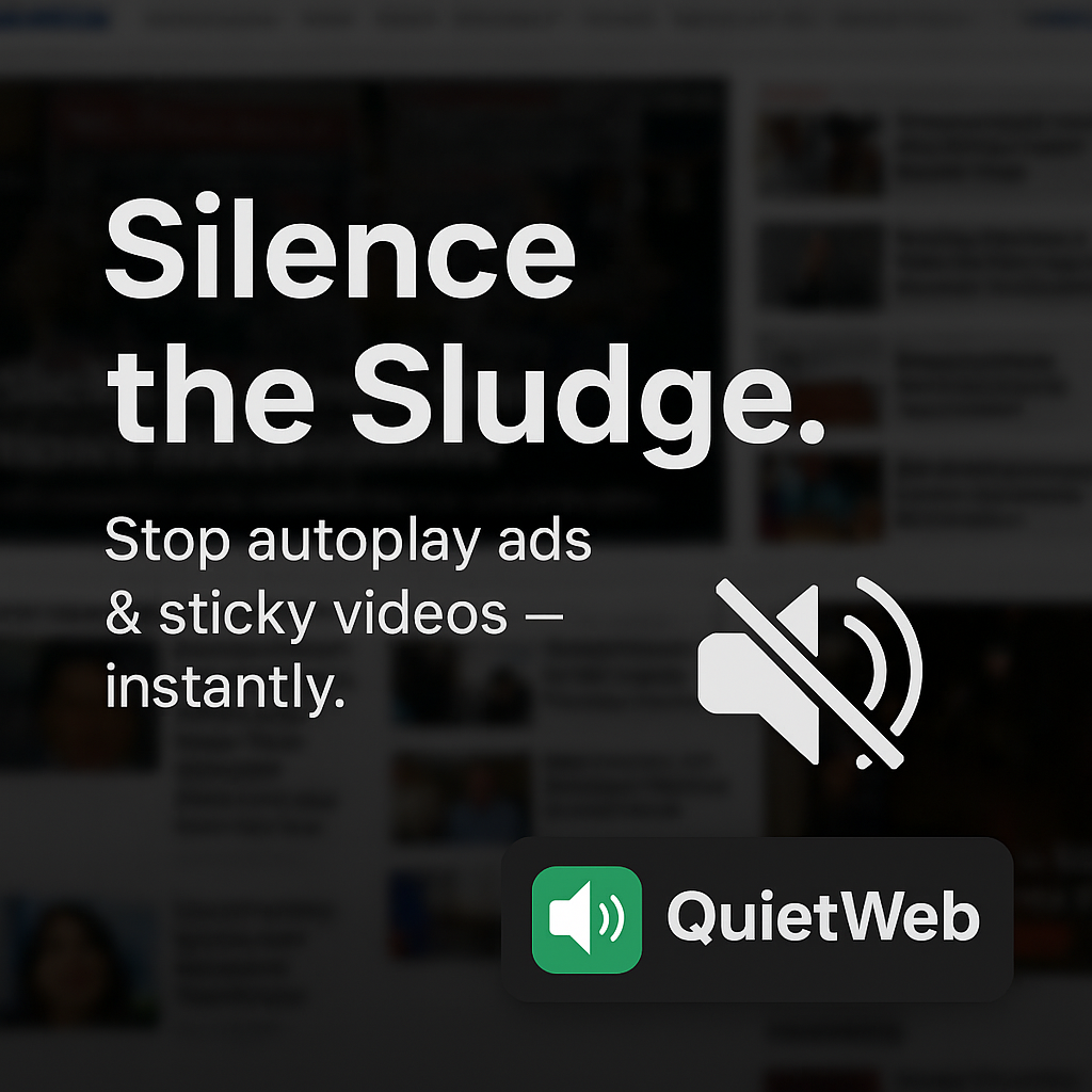 QuietWeb is your browsing bodyguard. It pauses, mutes, and hides intrusive media before it ever slows you down.